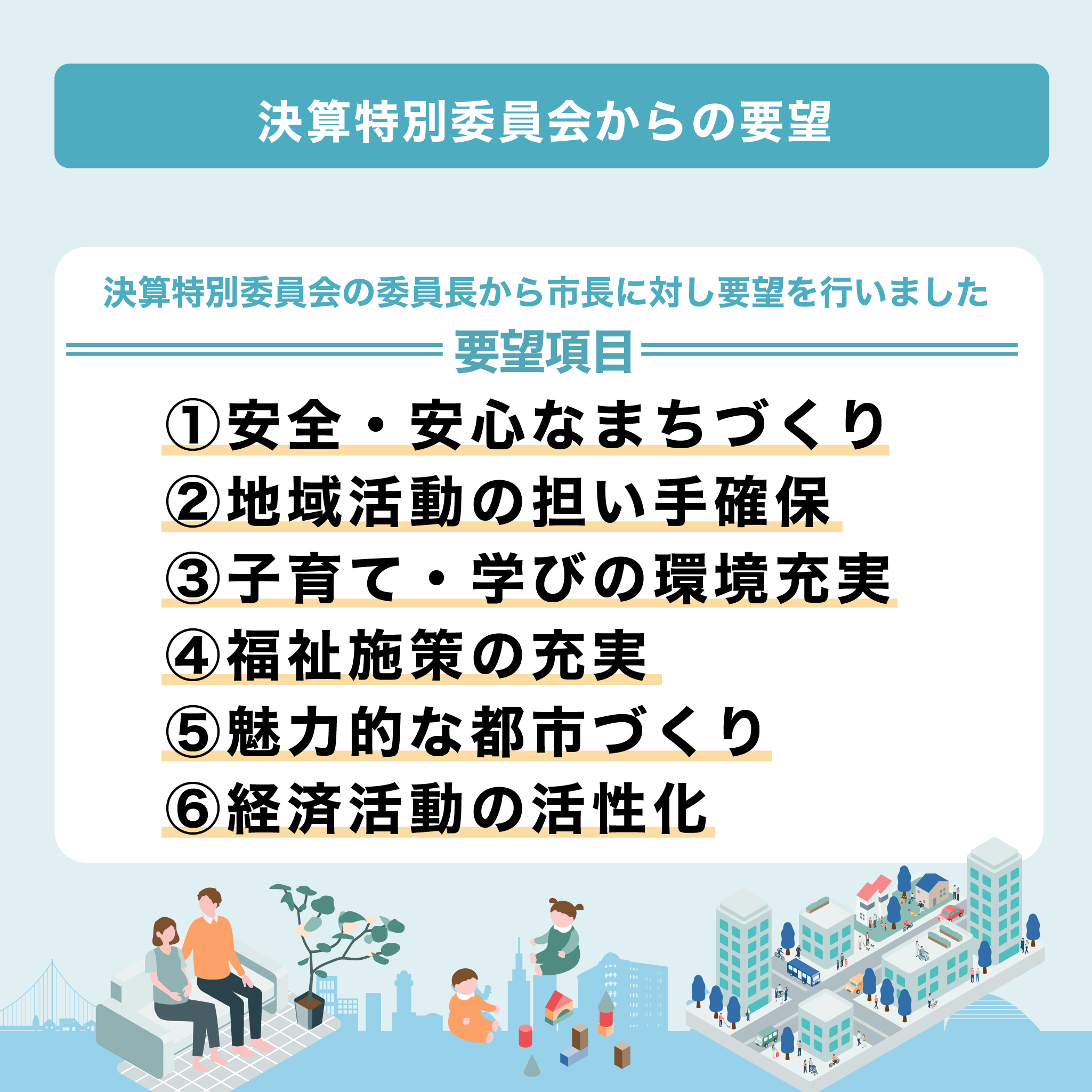 10月9日の本会議で、伊藤めぐみ決算特別委員会委員長から、市長に対し要望を行いました。